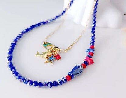 Gargantilla con piedras y abalorios de cristal y extensión