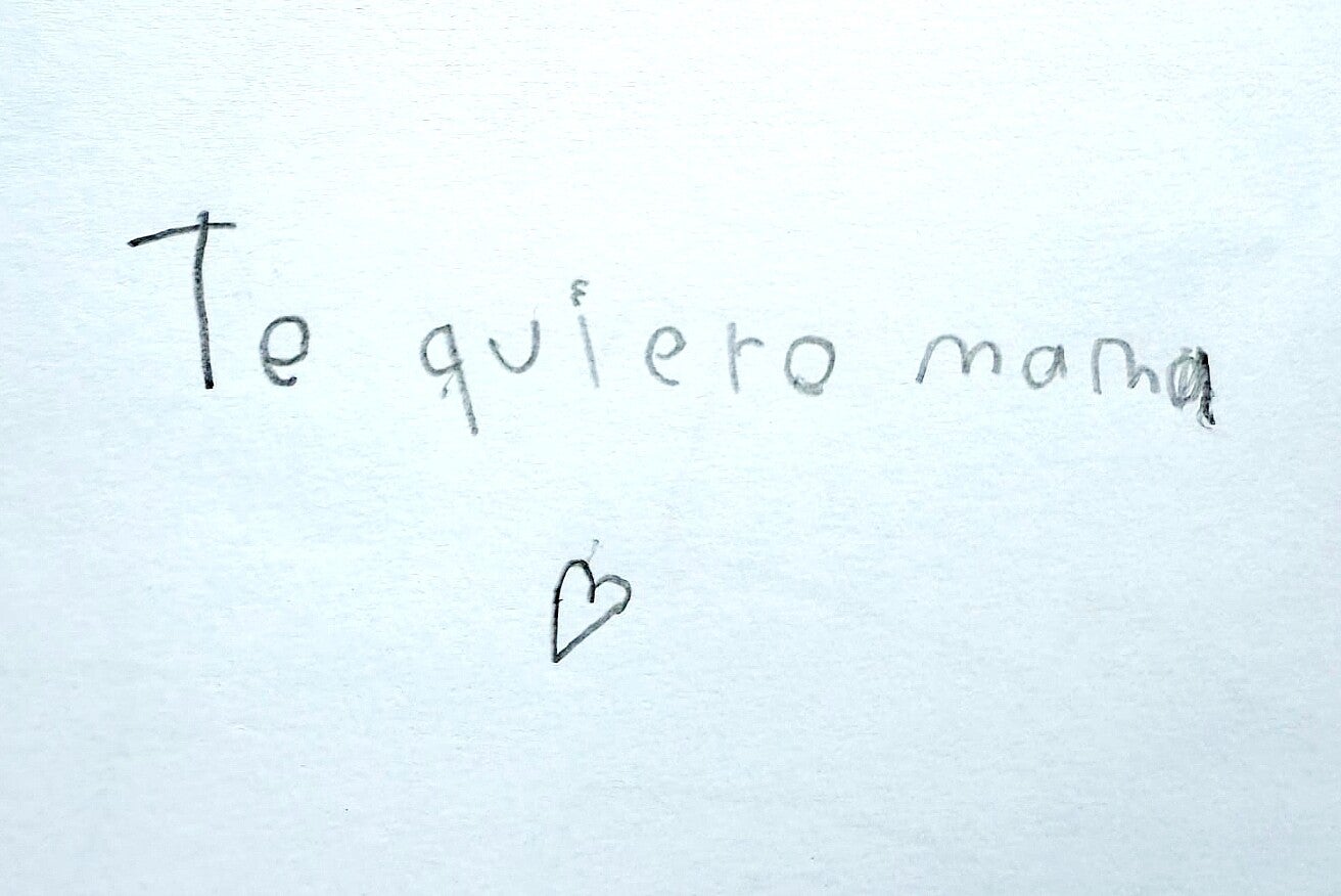 Esta pulsera está grabada con la letra y texto escrito por su hijo.